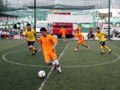 Các vận động viên tranh tài ở môn bóng đá mini. |