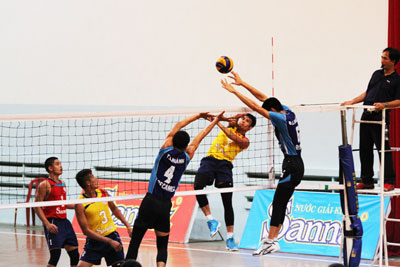 | Các vận động viên Sanest Khánh Hòa trong một trận đấu gặp Quân đoàn 4 - Becamex Bình Dương ở giải các đội mạnh khu vực phía Nam. |