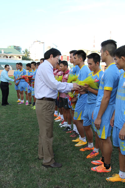 Tại buổi gặp, thay mặt lãnh đạo tỉnh, ông Nguyễn Duy Bắc chúc mừng đội bóng chính thức tranh tài tại V-League mùa bóng năm 2015; đồng thời mong muốn các cầu thủ sẽ thi đấu với tinh thần quyết tâm đạt thành tích tốt vì màu cờ sắc áo quê hương Khánh Hòa.