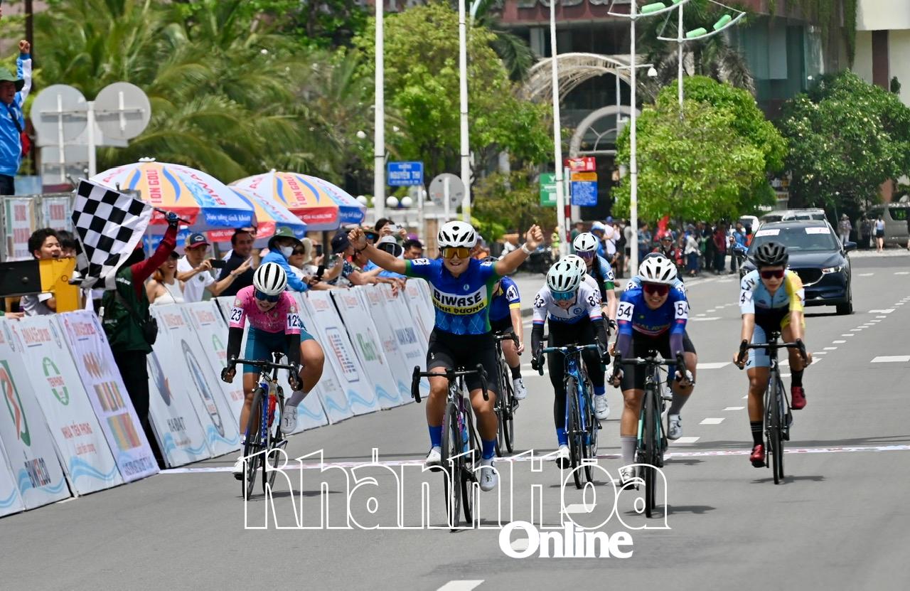 | Tay đua Watabe Kasuga, đội xe đạp Phân bón con voi Bình Dương, cán đích đầu tiên. |