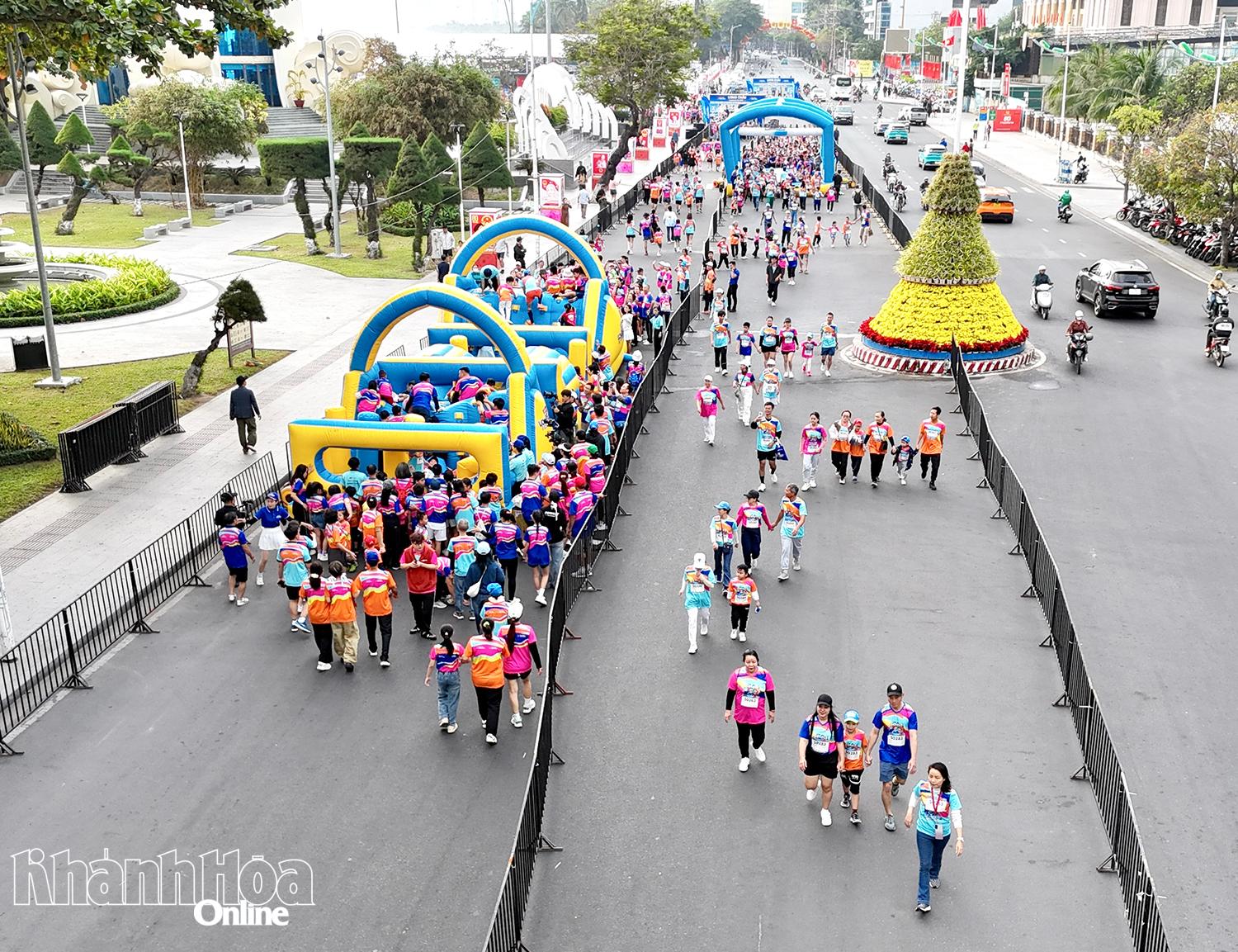 | Hàng trăm gia đình tham gia giải đi bộ trên tuyến đường biển Trần Phú. |
