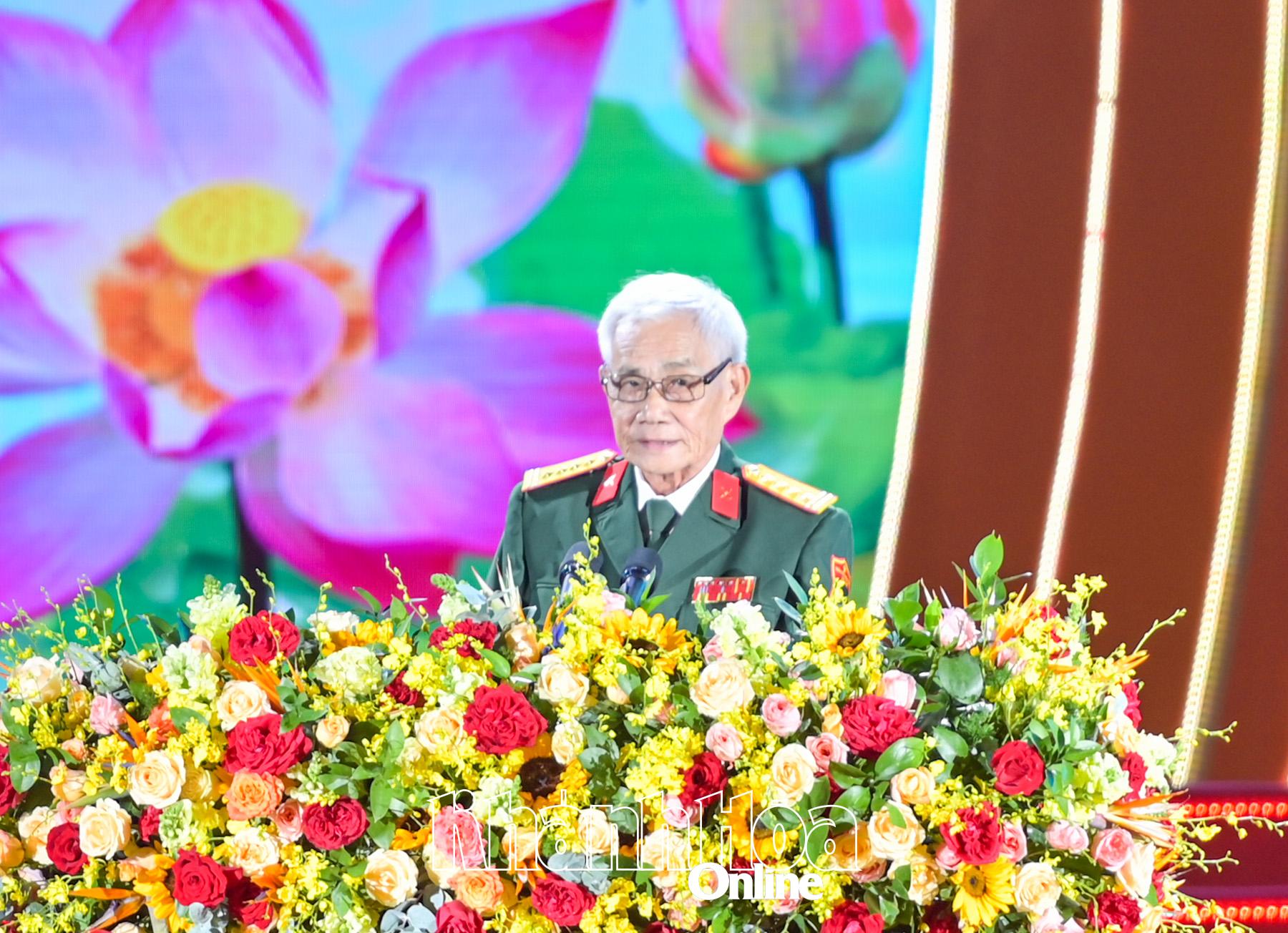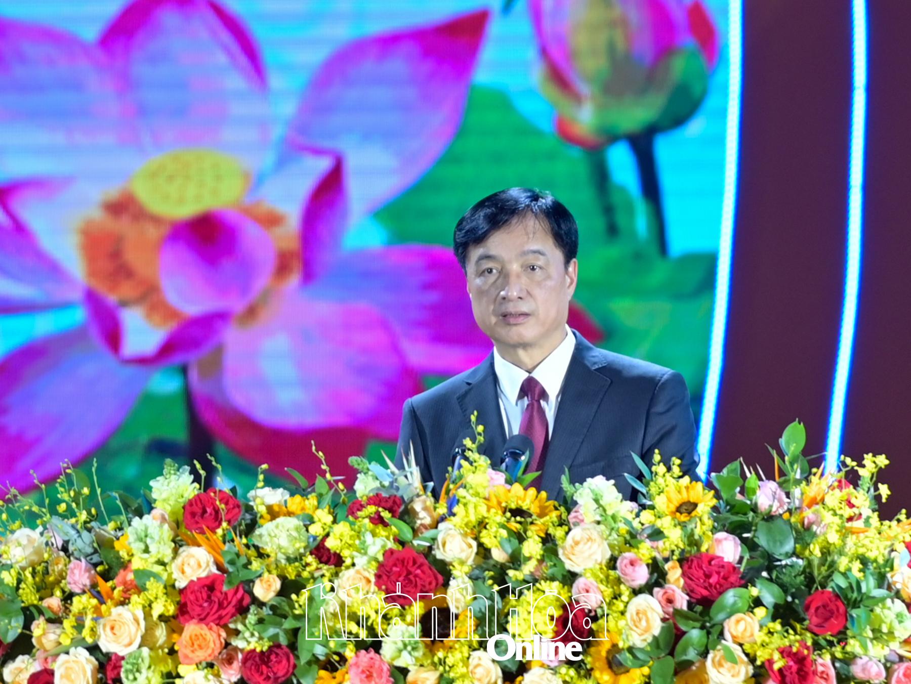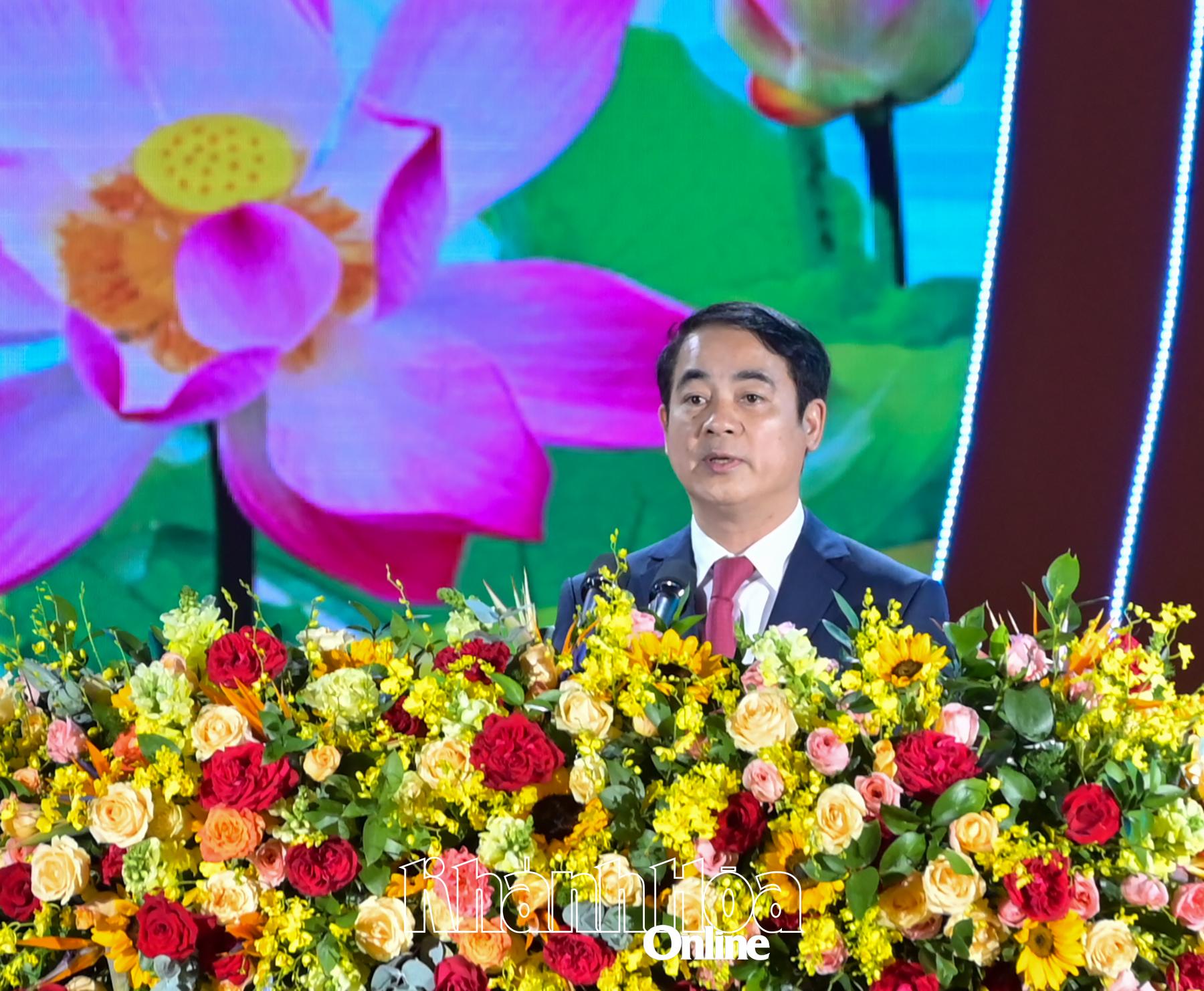 | Bí thư Tỉnh ủy Nghiêm Xuân Thành đọc diễn văn kỷ niệm. |