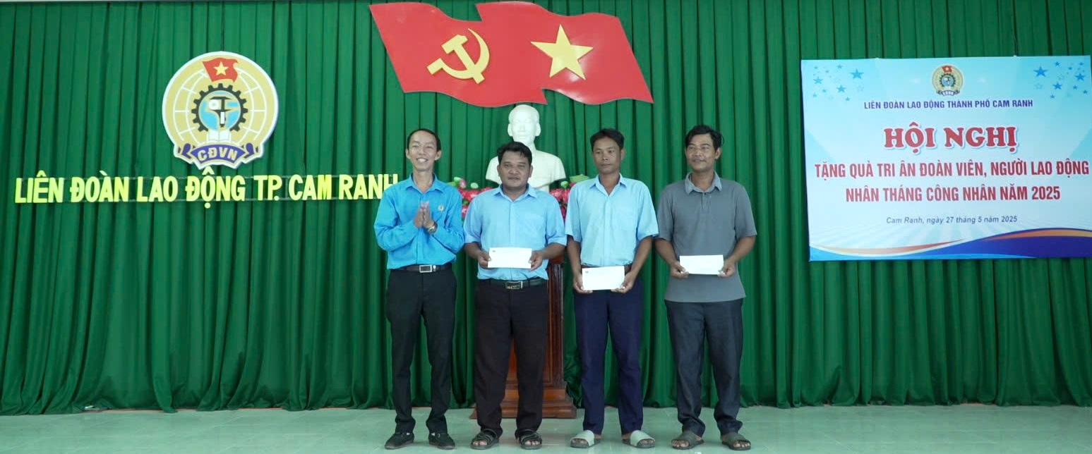 Tại buổi gặp mặt, Liên đoàn Lao động TP. Cam Ranh đã tri ân, tặng quà cho 145 đoàn viên, người lao động bị tai nạn lao động, bệnh nghề nghiệp, có hoàn cảnh khó khăn. Trong đó, Liên đoàn Lao động tỉnh trao tặng 90 suất, mỗi suất 700.000 đồng; Liên đoàn Lao động thành phố trao tặng 55 suất, mỗi suất 500.000 đồng. Tổng quà tặng trị giá hơn 90 triệu đồng.