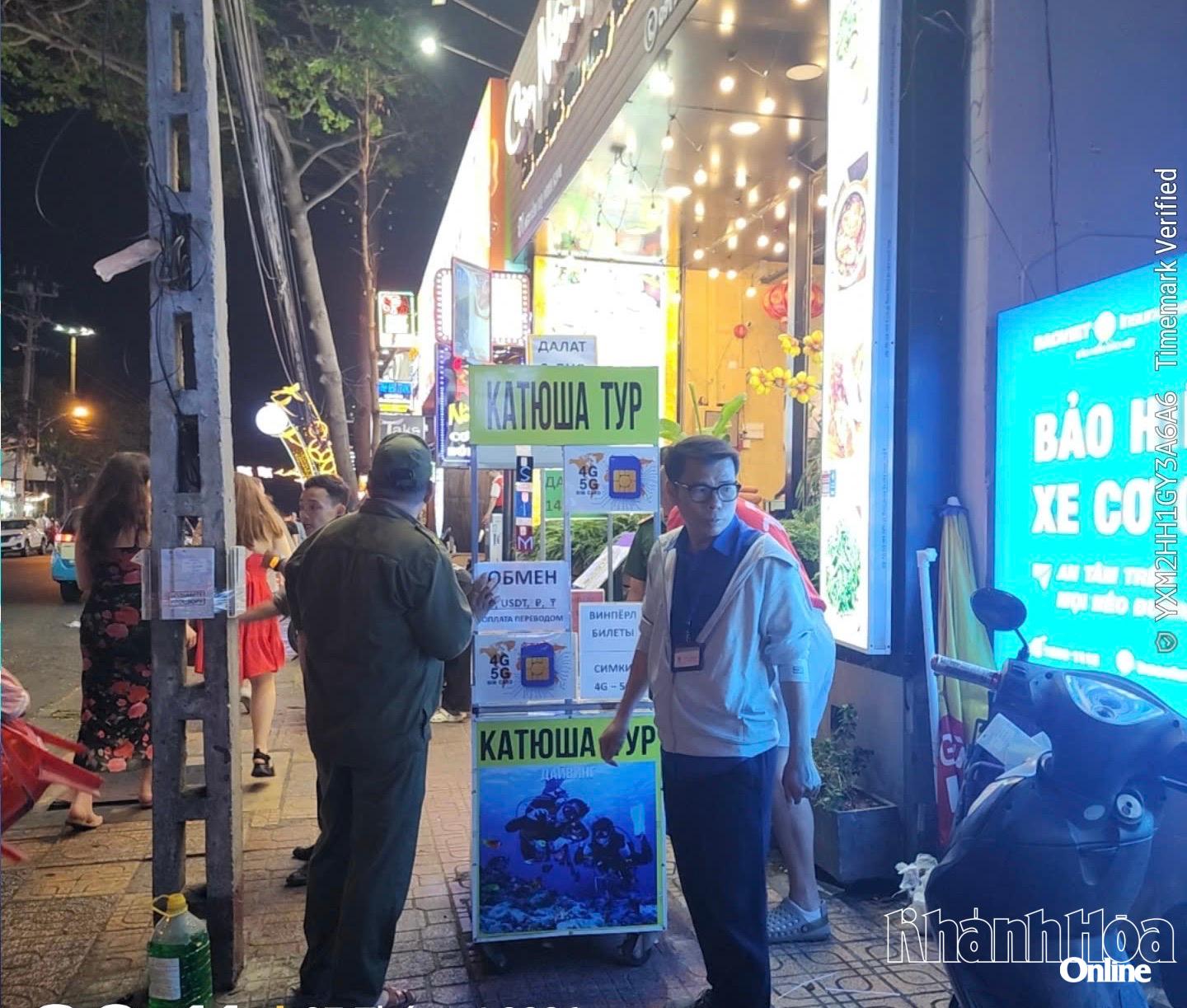 Tối 7-4, Tổ tuần tra, kiểm tra trên các lĩnh vực giao thông, trật tự mỹ quan đô thị, vệ sinh môi trường của phường Nha Trang tiếp tục ra quân kiểm tra trên các tuyến đường: Trần Phú, Lê Lợi, Nguyễn Chánh, Yersin, Lý Tự Trọng, Lê Thánh Tôn, Nguyễn Thị Minh Khai, Trần Quang Khải, Biệt Thự và khu vực Quảng trường 2 tháng 4.