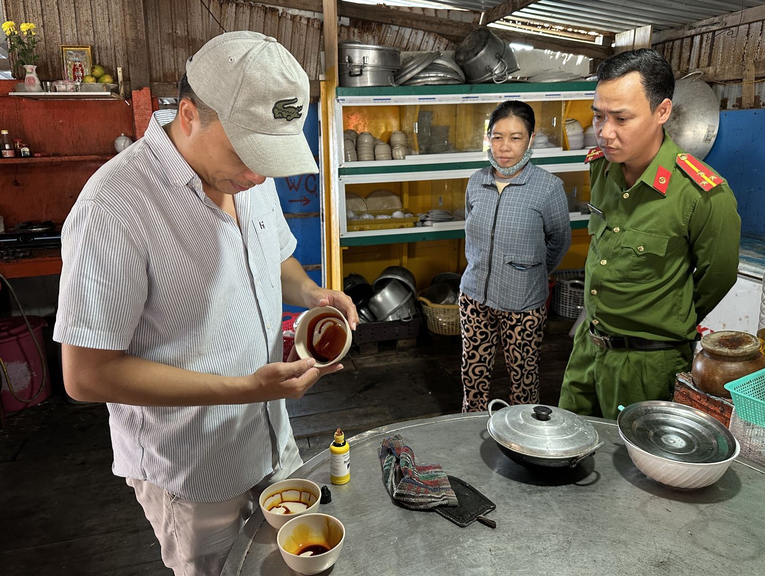 Đoàn đã kiểm tra 5 cơ sở kinh doanh dịch vụ ăn uống, 11 quán ăn đường phố tại 2 thôn Bình Ba Đông và Bình Ba Tây; bếp ăn tập thể của Trường Mầm non Cam Bình. Nội dung kiểm tra tập trung vào hồ sơ pháp lý của cơ sở, gồm: Giấy chứng nhận đủ điều kiện ATTP, giấy khám sức khỏe và xác nhận kiến thức của chủ cơ sở, người trực tiếp kinh doanh; điều kiện bảo đảm vệ sinh tại cơ sở, trang thiết bị, dụng cụ chế biến và nguồn nước sử dụng; quy trình chế biến, bảo quản, vận chuyển thực phẩm; nguồn gốc nguyên liệu, phụ gia; việc lưu mẫu và ghi chép sổ sách theo quy định.