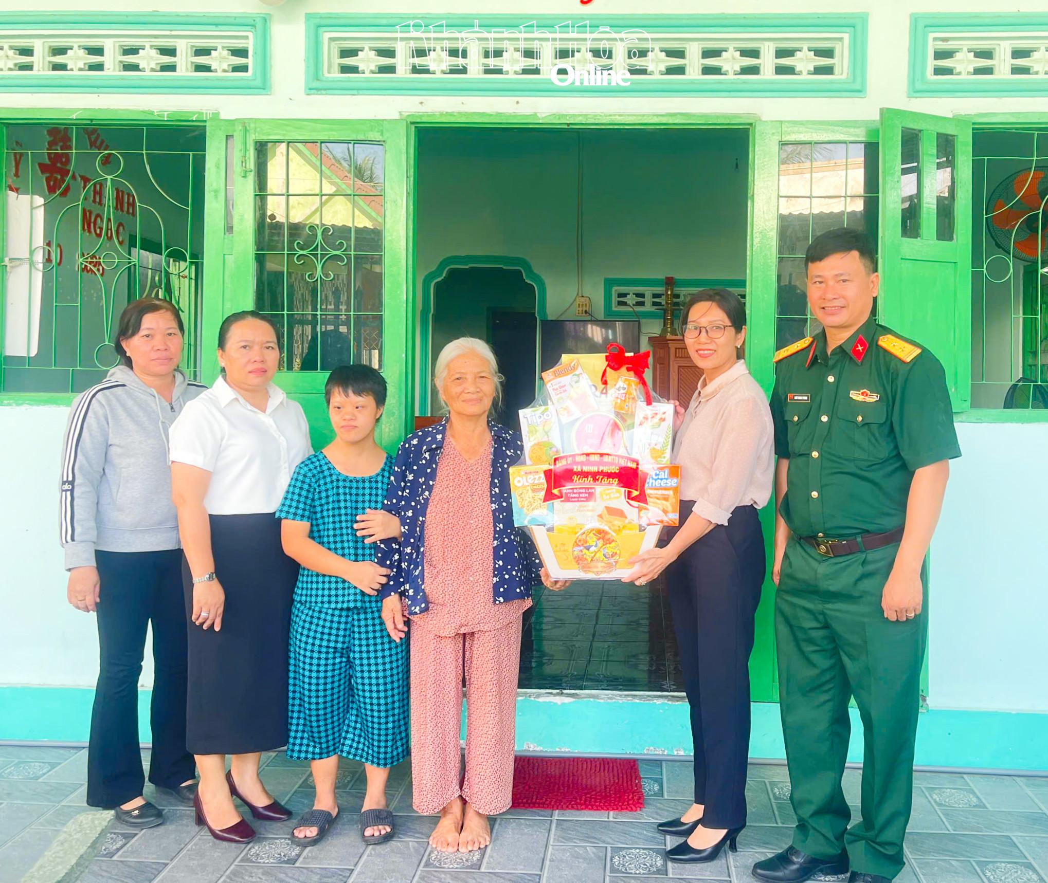 | Đoàn đến thăm, tặng quà cho gia đình bà Dương Thị Điệp (thôn 1), có con nhiễm chất độc hóa học. |