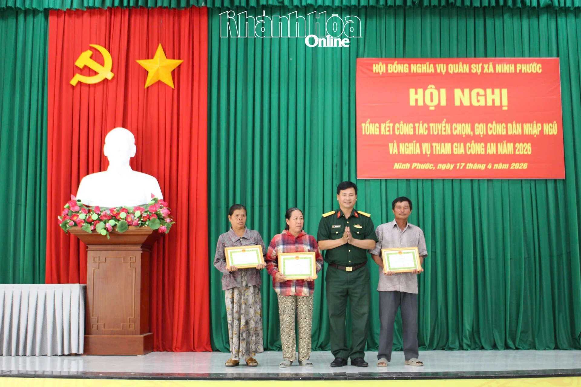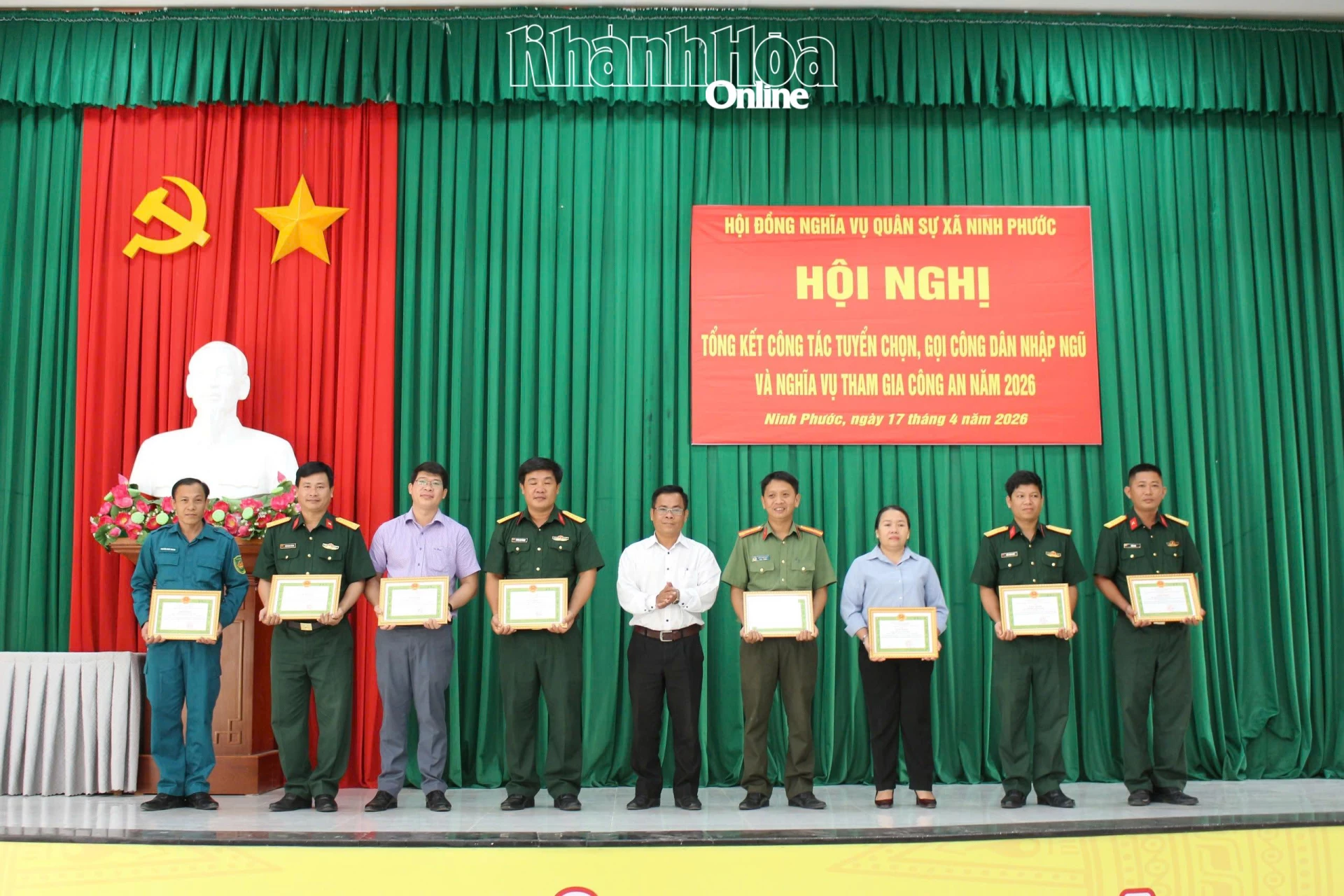 Chiều 17-4, UBND xã Ninh Phước tổ chức hội nghị tổng kết công tác tuyển chọn, gọi công dân nhập ngũ và thực hiện nghĩa vụ tham gia Công an nhân dân năm 2026.