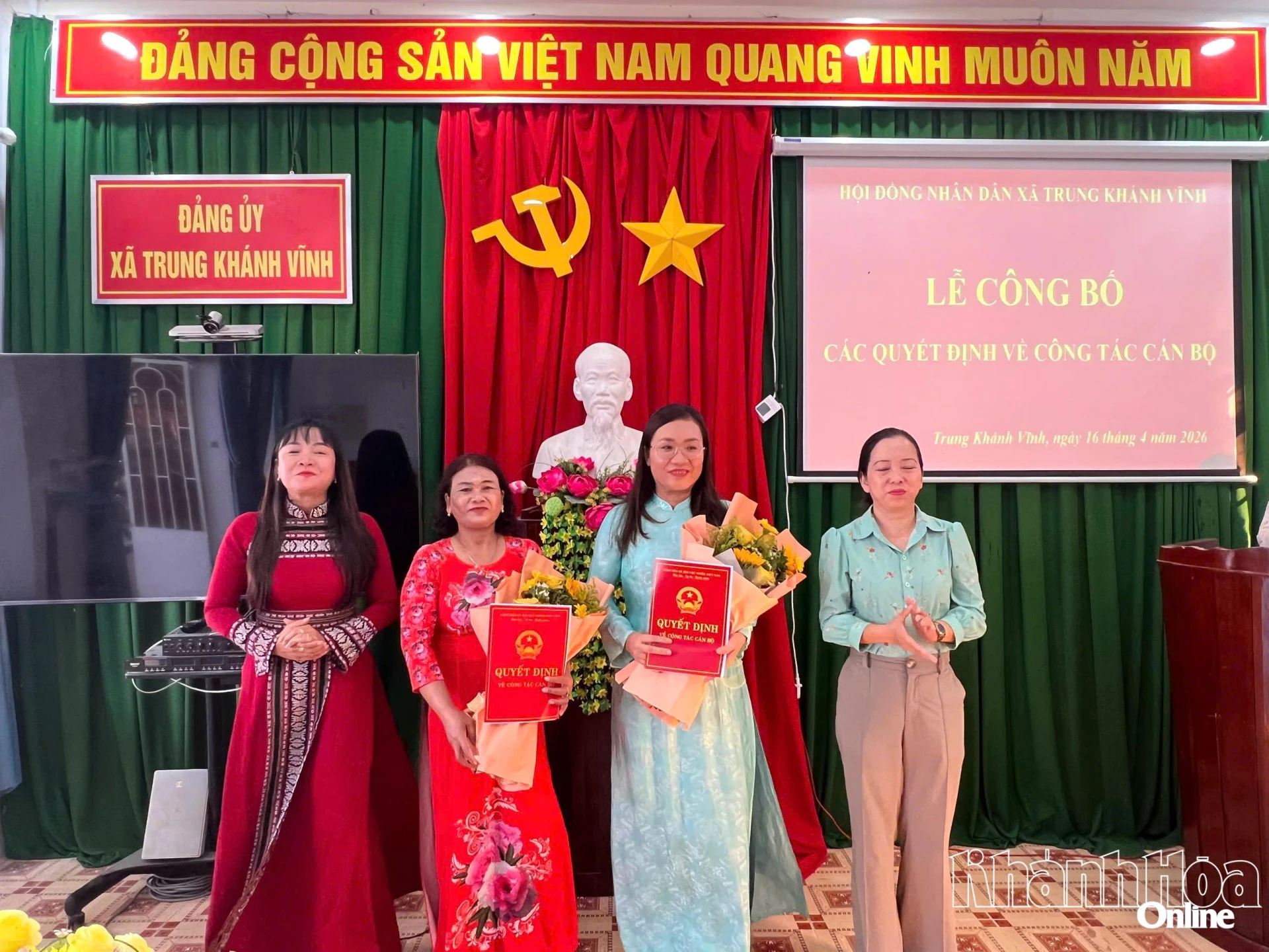 Hội nghị cũng công bố Quyết định của Chủ tịch UBND tỉnh phê chuẩn kết quả bầu bà Cao Thị Ngọc Thanh - Phó Bí thư Đảng ủy, Chủ tịch UBND xã Trung Khánh Vĩnh nhiệm kỳ 2021 - 2026 tiếp tục giữ chức vụ Chủ tịch UBND xã nhiệm kỳ 2026 - 2031; phê chuẩn kết quả bầu ông Nguyễn Phú Khánh và ông Nguyễn Thư Trung - Phó Chủ tịch UBND xã Trung Khánh Vĩnh nhiệm kỳ 2021 - 2026 giữ chức vụ Phó Chủ tịch UBND xã nhiệm kỳ 2026 - 2031.