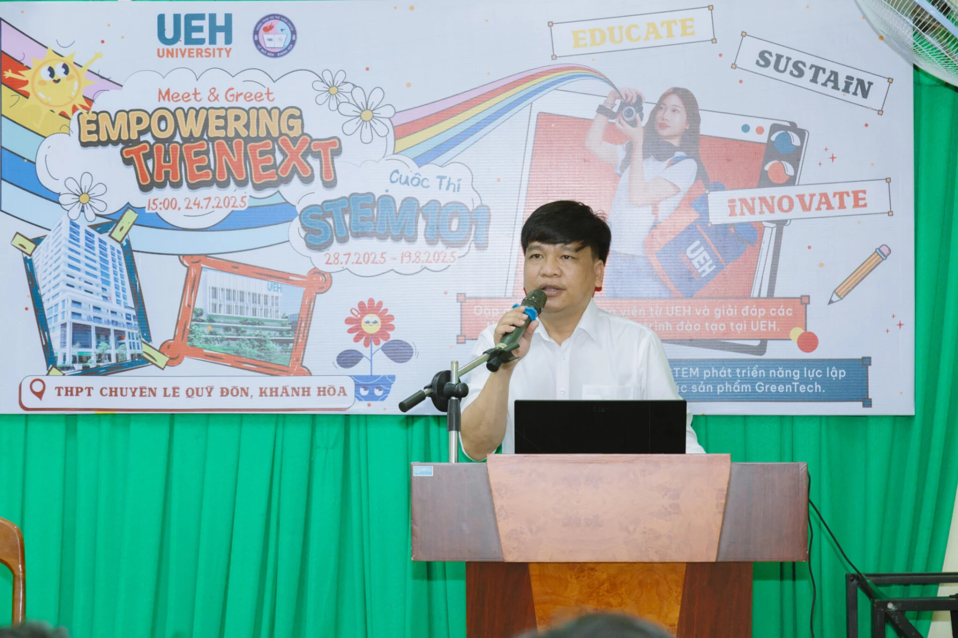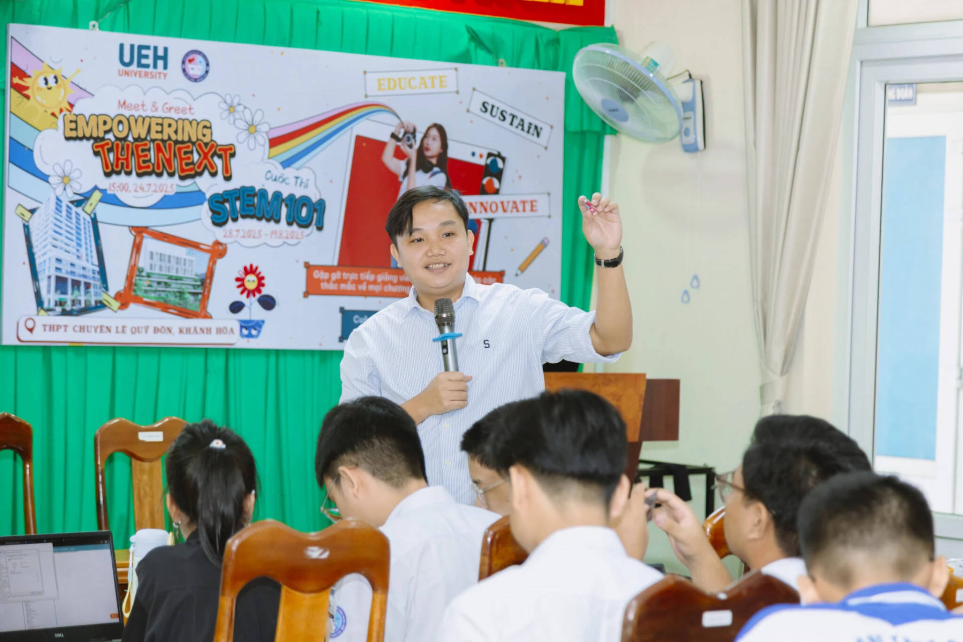 Tiếp nối hoạt động tư vấn tuyển sinh hướng nghiệp Meet & Greet tại UEH Day 2025 dành cho học sinh THPT trên địa bàn tỉnh Khánh Hòa, UEH tiếp tục phối hợp cùng Trường THPT Chuyên Lê Quý Đôn tổ chức Cuộc thi đổi mới sáng tạo STEM 101 từ ngày 28/7 đến ngày 19/8/2025. Với sự góp mặt của 15 đội thi tiềm năng, cuộc thi không chỉ là sân chơi học thuật giàu tính thực tiễn, mà còn là hành trình khơi nguồn đam mê khoa học, công nghệ, kỹ thuật và toán học (STEM) trong giới trẻ.