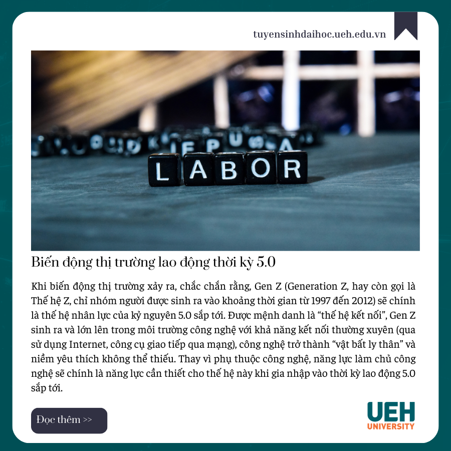 Có thể thấy, yêu cầu nhân lực trong tương lai sẽ được nâng lên một tầm cao mới, đó là những nhân sự phải thực sự hiểu nghiệp vụ và hiểu công nghệ có khả năng hỗ trợ nghiệp vụ của họ như thế nào. Nếu không chấp nhận sự thật này, chắc chắn nhân sự sẽ có nguy cơ bị tụt hậu hoặc thậm chí bị đào thải. Và chắc chắn rằng, Gen Z (Generation Z, hay còn gọi là Thế hệ Z, chỉ nhóm người được sinh ra vào khoảng thời gian từ 1997 đến 2012) sẽ chính là thế hệ nhân lực của kỷ nguyên 5.0 sắp tới. Được mệnh danh là “thế hệ kết nối”, Gen Z sinh ra và lớn lên trong môi trường công nghệ với khả năng kết nối thường xuyên (qua sử dụng Internet, công cụ giao tiếp qua mạng), công nghệ trở thành “vật bất ly thân” và niềm yêu thích không thể thiếu. Thay vì phụ thuộc công nghệ, năng lực làm chủ công nghệ sẽ chính là năng lực cần thiết cho thế hệ này khi gia nhập vào thời kỳ lao động 5.0 sắp tới.