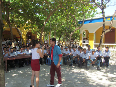 | Giao lưu văn nghệ với cán bộ, chiến sĩ trên đảo Sinh Tồn. |