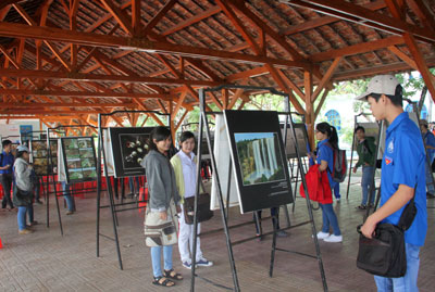 | Sinh viên Trường Đại học Nha Trang thích thú với những bức ảnh của triển lãm ảnh Di sản Việt Nam. |