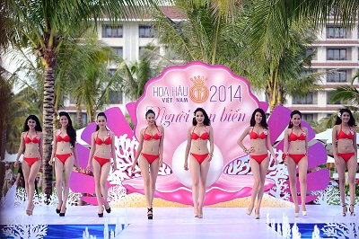 Chiều ngày 2-12, vòng thi “Người Đẹp Biển”của cuộc thi Hoa hậu Việt Nam 2014 đã khiến khu du lịch nghỉ dưỡng 5 sao Vinpearl Phú Quốc trở nên bừng sáng hơn. Khu vực bể bơi bỗng như trở thành một “thiên đường nơi hạ giới” với 38 “nàng tiên” xinh đẹp khoe sắc trong khung cảnh chan hòa của biển trời xanh ngắt.
