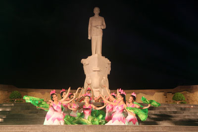 Tối cùng ngày, tại Tượng đài Bác Hồ (TP. Cam Ranh), Đoàn Ca múa nhạc Hải Đăng biểu diễn chương trình nghệ thuật kỷ niệm 125 năm ngày sinh Chủ tịch Hồ Chí Minh. Giữa bầu trời đêm lộng gió, bức tượng Bác với nét mặt hiền từ như rực sáng hơn dưới ánh đèn sân khấu, tạo nên không gian đầy cảm xúc. Khi những lời ca, điệu múa ca ngợi công ơn của Bác được hát lên, trong mỗi người lại dâng trào tình cảm với vị cha già của dân tộc. Người về đem tới ngày vui. Mùa thu nắng tỏa Ba Đình. Với tiếng Người còn dịu dàng như tiếng đất trời. Người về đem tới xuân đời từ đất nước cằn, từ bùn lầy cả cuộc đời vùng lên, những lời ca tươi vui, đầy niềm tin yêu của ca khúc Ca ngợi Hồ Chủ tịch đã đưa người nghe trở lại giây phút lịch sử khi Chủ tịch Hồ Chí Minh đọc bản Tuyên ngôn độc lập khai sinh nước Việt Nam dân chủ cộng hòa.