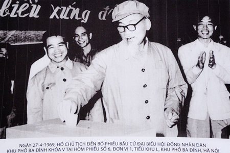 Triển lãm trưng bày, giới thiệu 45 bức ảnh tiêu biểu, xuất sắc trong quá trình chuẩn bị và tổ chức cuộc Tổng tuyển cử đầu tiên bầu Quốc hội nước Việt Nam Dân chủ Cộng hòa và các kỳ bầu cử Quốc hội, HĐND sau đó. Tiêu biểu là các hình ảnh như: Tổng tuyển cử đầu tiên bầu Quốc hội nước Việt Nam Dân chủ Cộng hòa năm 1946; Chủ tịch Hồ Chí Minh tuyên bố nhậm chức và giới thiệu thành phần Chính phủ tại phiên họp đầu tiên của Quốc hội khóa I tháng 2-1946; Chủ tịch Hồ Chí Minh với đại biểu Quốc hội và nhân sĩ, trí thức yêu nước tại kỳ họp thứ II, Quốc hội khóa I, tháng 10-1946; Chủ tịch Hồ Chí Minh bỏ phiếu bầu cử đại biểu HĐND khu phố Ba Đình khóa V tại hòm phiếu số 6, đơn vị 1, tiểu khu L, khu phố Ba Đình, Hà Nội vào ngày 27-4-1969...