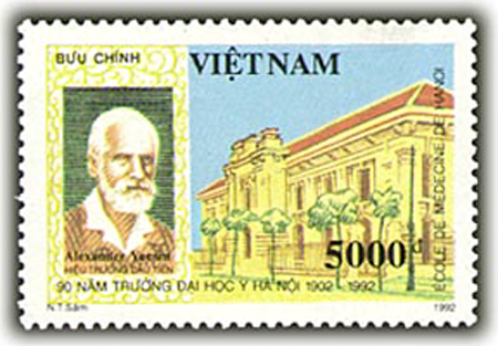 . Bộ tem phát hành ngày 20-11-1992 “Kỷ niệm 90 năm Trường Đại học Y Hà Nội” (1902 - 1992) do họa sĩ Nguyễn Thị Sâm thiết kế. Bộ tem có mệnh giá 200đ và 2000đ in hình bác sĩ A.Yersin, hiệu trưởng đầu tiên của Trường Đại học Y khoa Việt Nam.