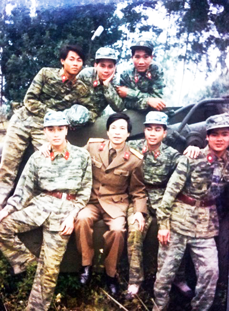 | Nhạc sĩ Minh Quang với chiến sĩ |