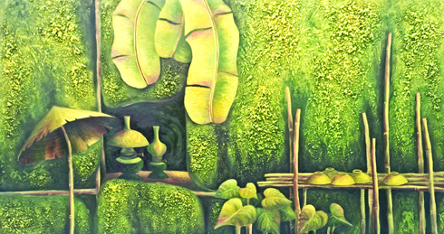 Tác phẩm Ký ức đèn dầu của họa sĩ Trần Hà |