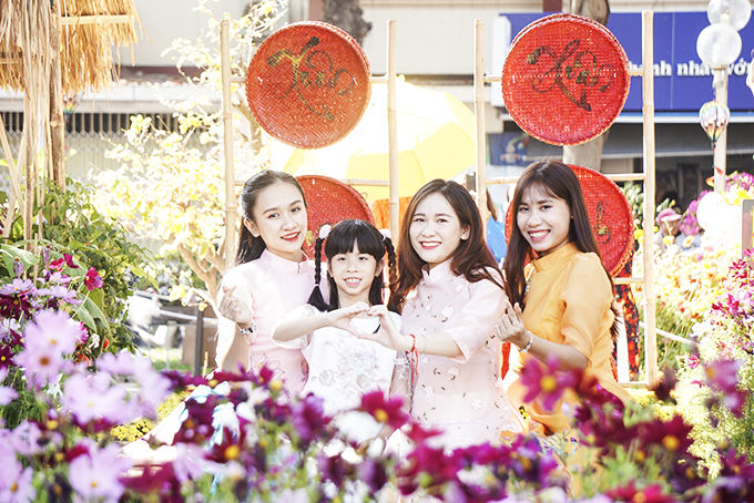 Các bạn trẻ chụp ảnh tại Hội hoa xuân năm 2020. |