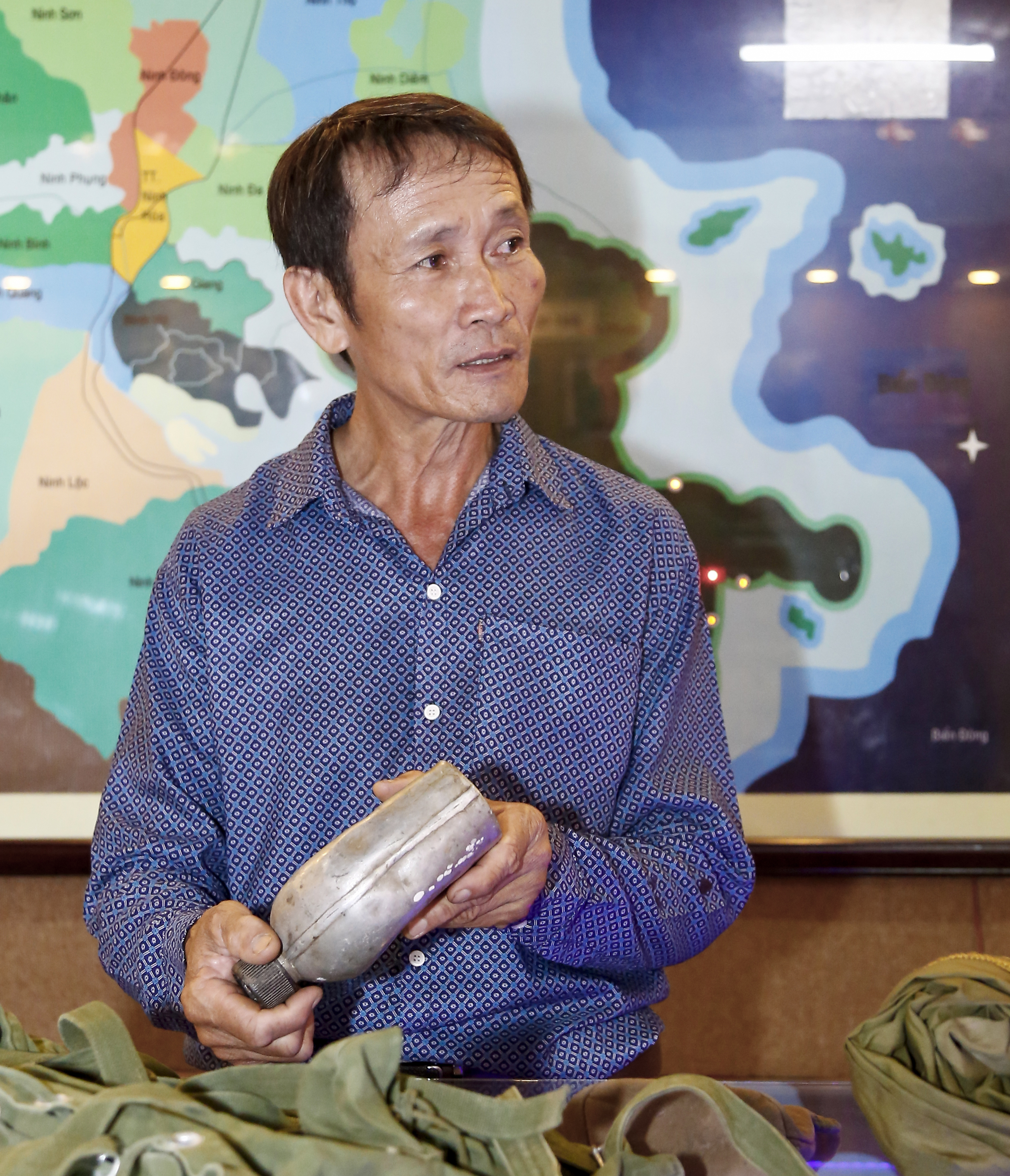 Một ngày giữa tháng 7-2023, chúng tôi đến Nhà truyền thống thị xã Ninh Hòa. Nở nụ cười thân thiện, ông Lương hồ hởi khoe vừa sưu tầm thêm một số hiện vật quý. Đó là chiếc ba lô còn nguyên vẹn, bên trong có một chiếc chăn mỏng và một bình tông đựng nước được cất giữ từ thời kháng chiến chống Mỹ. “Đây là kỷ vật của liệt sĩ, Anh hùng Lực lượng vũ trang nhân dân Hồ Thị Hạnh (xã Ninh Quang, Ninh Hòa)”, ông Lương giới thiệu. Hỏi chuyện mới biết, cách đây hơn một tháng, ông Lương đến gặp gia đình liệt sĩ Hồ Thị Hạnh để xin ảnh chân dung của bà về trưng bày ở nhà truyền thống. Khi biết gia đình còn cất giữ một số đồ dùng cá nhân của người nữ anh hùng, ông liền ngỏ ý xin gia đình giao lại để trưng bày ở Nhà truyền thống thị xã. “Thuyết phục mãi, em trai bà Hạnh mới đồng ý giao các hiện vật cho tôi sau khi đã thống nhất ý kiến trong gia đình”, ông Lương chia sẻ.