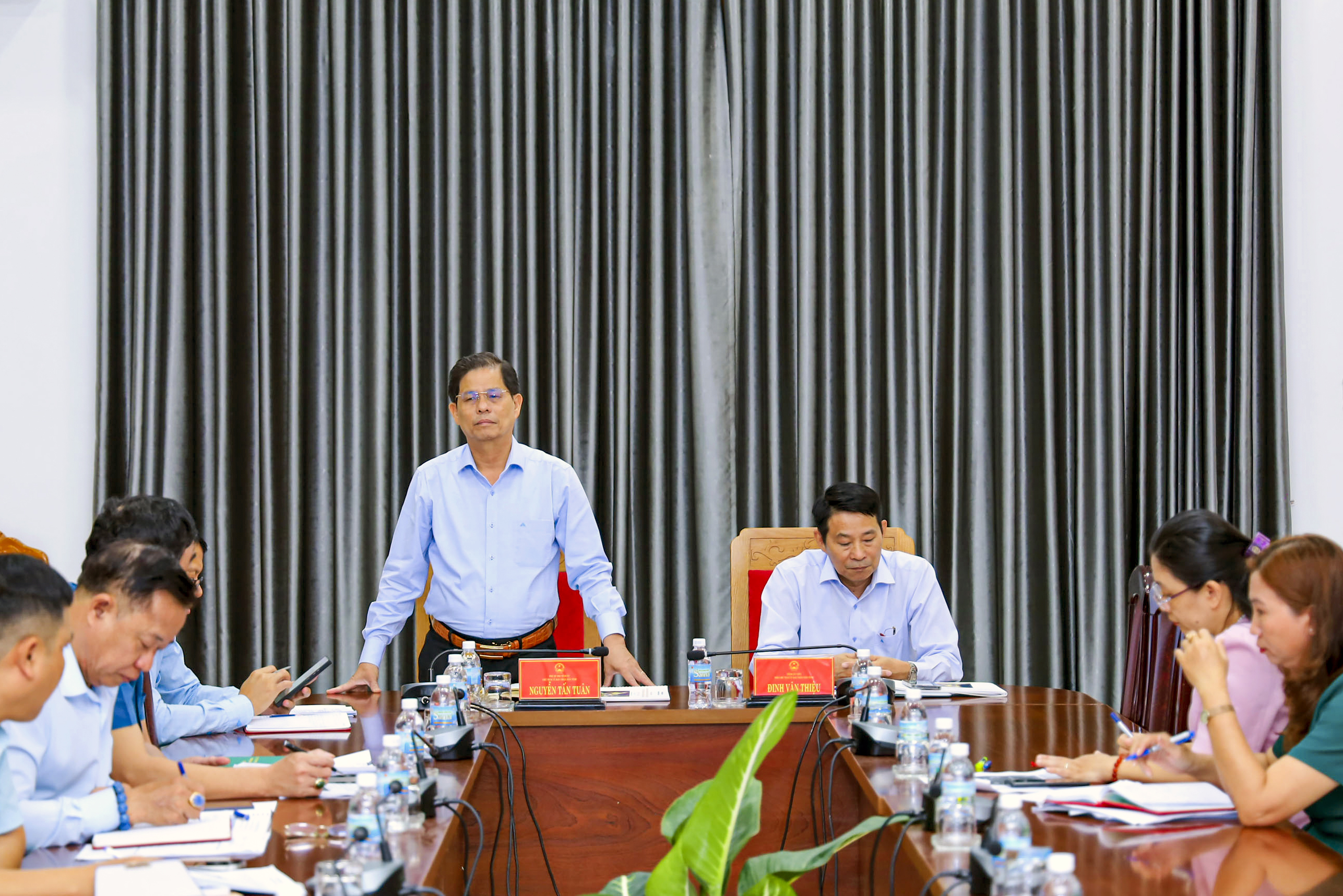 | Chủ tịch UBND tỉnh Nguyễn Tấn Tuân phát biểu kết luận cuộc họp. |