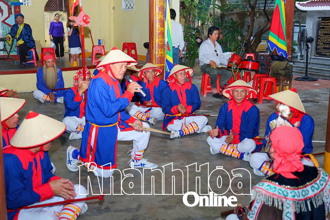 | Nghệ nhân Nguyễn Sỹ Huynh biểu diễn cùng đội hò bá trạo của lăng đình Trường Tây. |