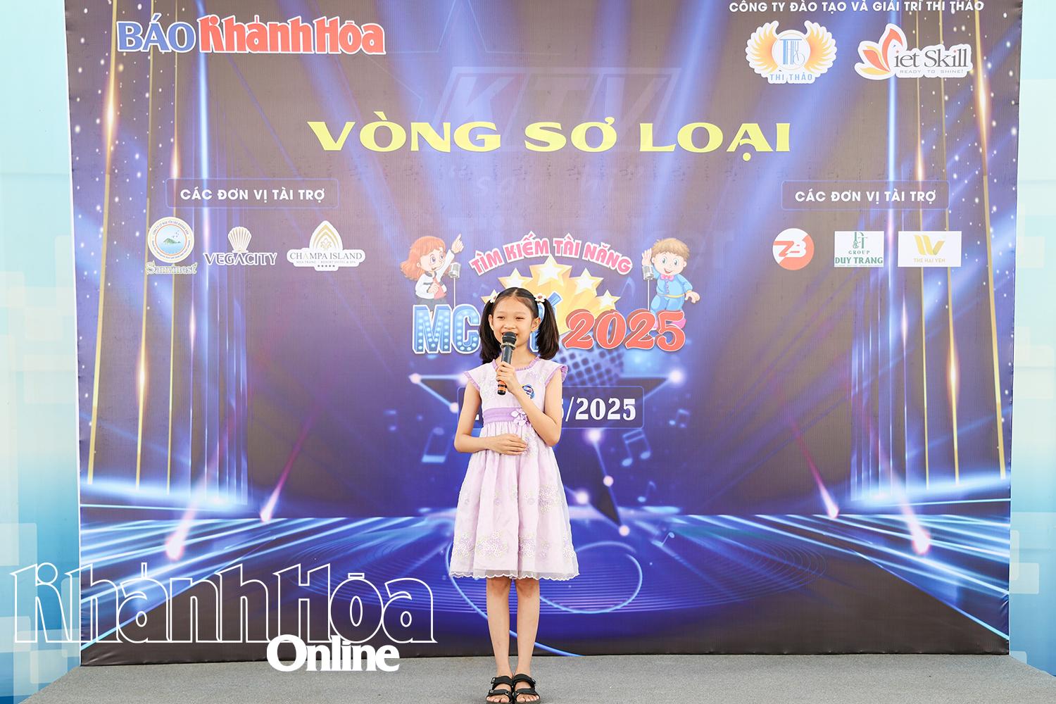 Ngày 29-5, tại Tòa soạn Báo Khánh Hòa (đường A1, Khu đô thị An Bình Tân, TP. Nha Trang), diễn ra vòng sơ loại cuộc thi “Tìm kiếm tài năng MC nhí 2025”. Cuộc thi do Báo Khánh Hòa phối hợp Công ty TNHH Đào tạo và Giải trí Thi Thảo tổ chức. Đến dự có bà Thái Thị Lệ Hằng - Tỉnh ủy viên, Tổng Biên tập Báo Khánh Hòa, Trưởng Ban tổ chức cuộc thi; cùng các vị trong Ban Biên tập Báo Khánh Hòa, Ban tổ chức cuộc thi; lãnh đạo các doanh nghiệp; cùng hơn 200 thí sinh đến từ các trường tiểu học, THCS trên địa bàn tỉnh và khu vực miền Trung - Tây Nguyên; đông đảo cổ động viên là giáo viên, phụ huynh của các thí sinh.