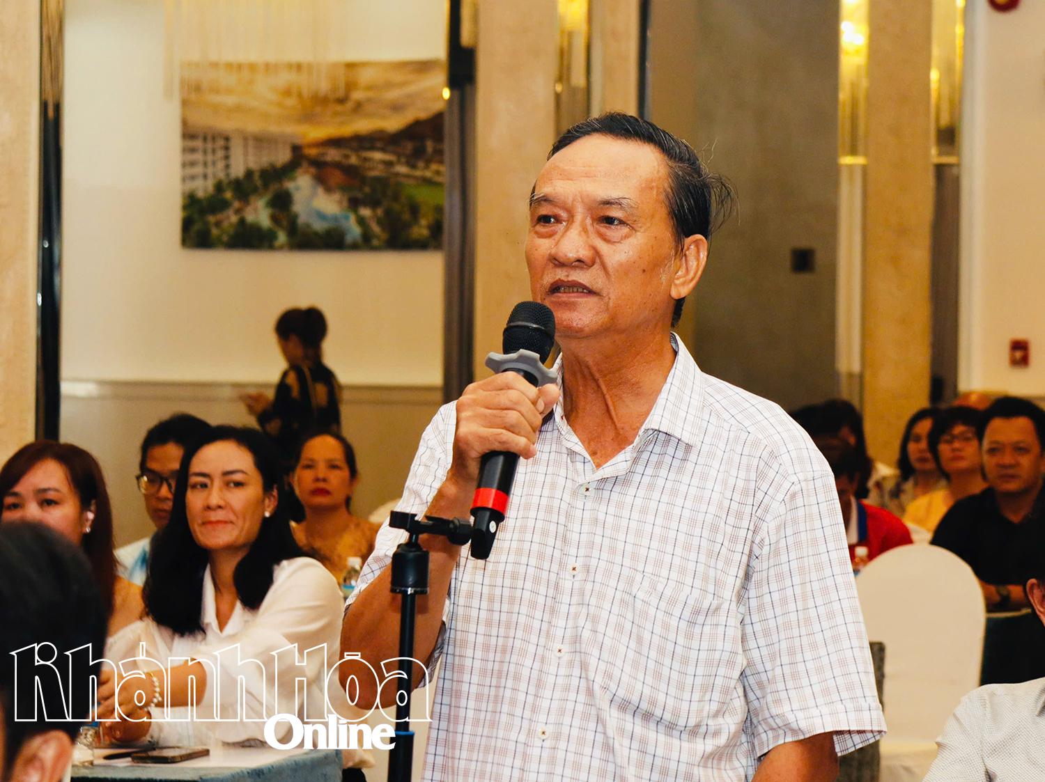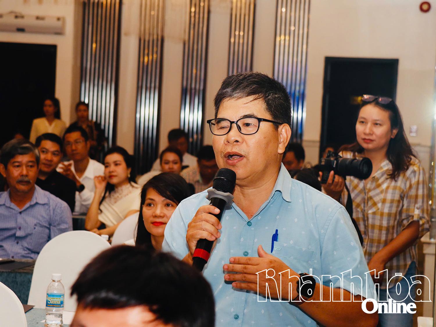 | Ông Trần Minh Thảo - Phó Tổng Biên tập Báo Khánh Hòa, Phó Trưởng Ban tổ chức cuộc thi trả lời câu hỏi của các phóng viên, nhà báo tại buổi họp báo. |