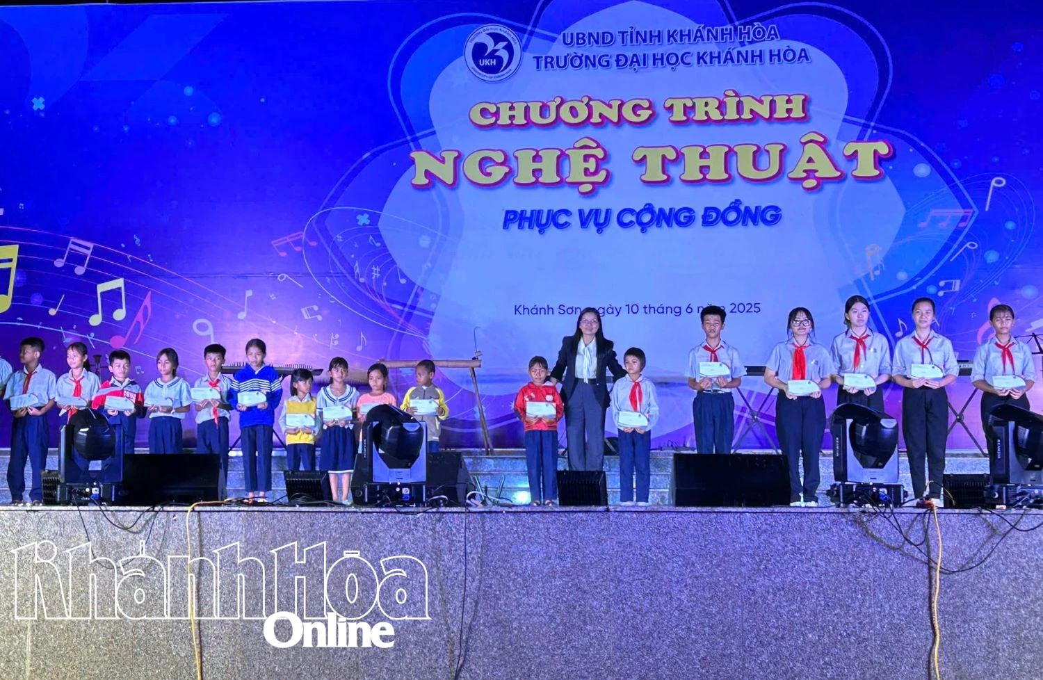 Dịp này, Trường Đại học Khánh Hòa và các doanh nghiệp đã trao tổng cộng 120 suất quà, mỗi suất trị giá 500.000 đồng cho các học sinh có hoàn cảnh khó khăn trên địa bàn huyện Khánh Sơn.