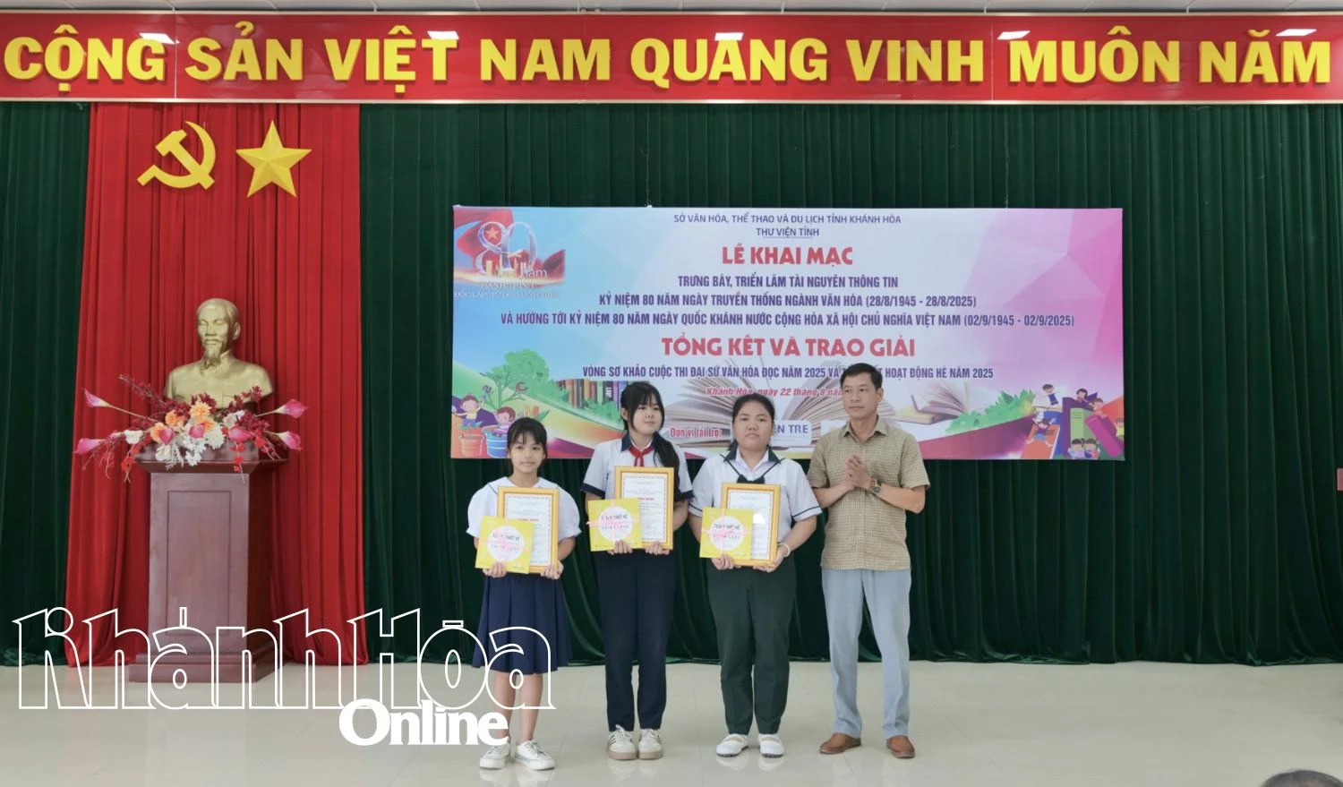Cuộc thi Đại sứ văn hóa đọc năm 2025 tại cơ sở 2 của Thư viện tỉnh được phát động từ ngày 14-4 đến 13-6-2025, qua đó đã nhận được 12.450 bài dự thi từ 82 trường học trên địa bàn nam Khánh Hòa. Kết quả, Ban tổ chức đã trao 28 giải cá nhân, gồm: 3 giải nhất, 5 giải nhì, 8 giải ba và 12 giải khuyến khích; 2 giải tập thể và 1 giải chuyên đề. Qua đó, chọn 3 bài đạt chất lượng cao dự vòng chung kết toàn quốc cuộc thi tổ chức tại TP. Hà Nội.