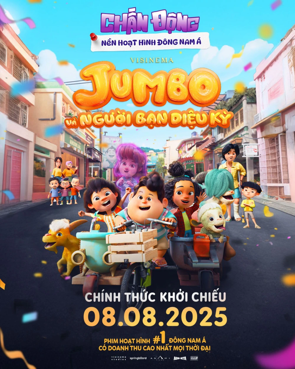 Sau thành công vang dội tại quê nhà Indonesia và các nước trong khu vực, bộ phim hoạt hình “Jumbo và người bạn diệu kỳ” - tác phẩm được ví như “bom tấn hoạt hình Đông Nam Á” đã chính thức có mặt tại các rạp chiếu phim trên toàn quốc từ ngày 08/08/2025, do Aeon Beta Distribution phát hành.
