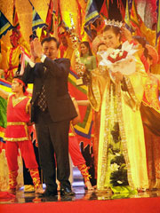| Ông Trần Chiến Thắng - Thứ trưởng Bộ Văn hóa - Thể thao và Du lịch trao vương miện HHTG người Việt cho Ngô Phương Lan. |