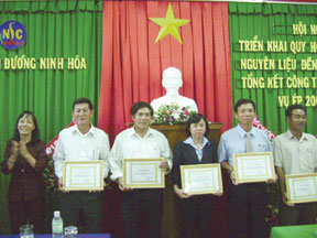 Nhân dịp này, Sở NN-PTNT đã tặng giấy khen cho 15 hộ nông dân và 8 tập thể đạt thành tích cao trong niên vụ mía 2008 - 2009. Công ty Cổ phần Đường Ninh Hòa trao giải khuyến mãi cho các hộ nông dân sản xuất mía giỏi niên vụ 2008 - 2009. Tổng trị giá giải thưởng hơn 225 triệu đồng.