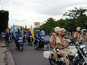 | ĐVTN diễu hành tuyên truyền về an toàn giao thông trên các trục đường chính của TP. Nha Trang. Ảnh minh họa |