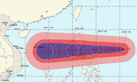 Theo Trung tâm Dự báo Khí tượng Thủy văn Trung ương, dự báo trong 24 giờ tới, bão di chuyển theo hướng giữa Tây và Tây Tây Nam, mỗi giờ đi được khoảng 25 km. Đến 7 giờ ngày 31-10, vị trí tâm bão vào khoảng 14,6 độ Vĩ Bắc - 120,4 độ Kinh Đông, ngay trên bờ biển phía Tây Nam đảo Luzon. Sức gió mạnh nhất ở vùng gần tâm bão mạnh cấp 12, cấp 13 (tức là từ 118 - 149 km/h), giật cấp 14, cấp 15. Như vậy sáng 31-10, bão sẽ đi vào khu vực phía Đông biển Đông.