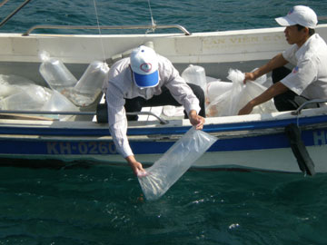 Vừa qua, Ban Quản lý khu bảo tồn biển (BQLKBTB) vịnh Nha Trang đã thả 3.000 con cá ngựa và 2.000 con cá Nemo (cá khoang cổ) 1 tháng tuổi xuống vùng lõi KBTB Hòn Mun nhằm góp phần tái tạo nguồn lợi thủy sản. Tổng số cá thả đợt này trị giá khoảng 45 triệu đồng. Dịp này, UBND TP. Nha Trang cũng tham gia thả 1.000 con ốc đụn; Viện Nghiên cứu nuôi trồng thủy sản III thả 300 con hải sâm.