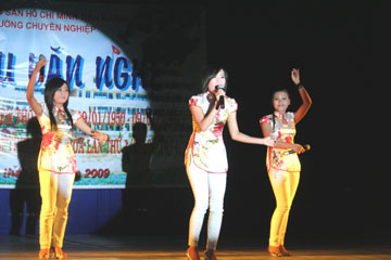 | Sinh viên trường Cao đẳng Văn hóa nghệ thuật và Du lịch Nha Trang biểu diễn tiết mục "Nắng có còn xuân" |