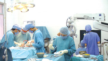 | Các bác sĩ Bệnh viện tỉnh phẫu thuật với hệ thống kính phẫu thuật mới |
