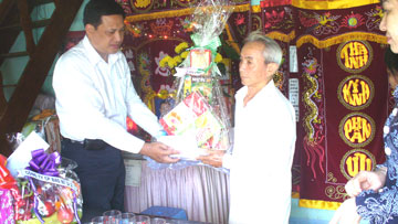 | Ông Lê Hữu Thọ - Phó Giám đốc Sở Y tế trao quà cho gia đình nạn nhân. |