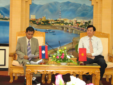 | Ông Trần Công Phàn - Phó Chủ tịch UBND tỉnh Khánh Hòa tiếp xã giao đồng chí Khămphảkhămpumi - Giám đốc Sở Tư pháp tỉnh Chămpasắc (Cộng hòa Dân chủ Nhân dân Lào). |