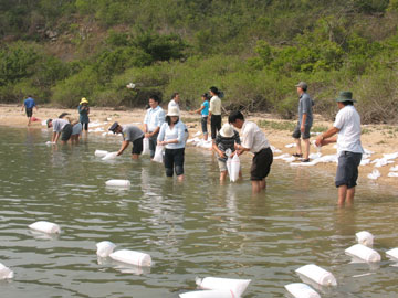 | Thả tôm giống ra đầm Nha Phu để tái tạo nguồn lợi |