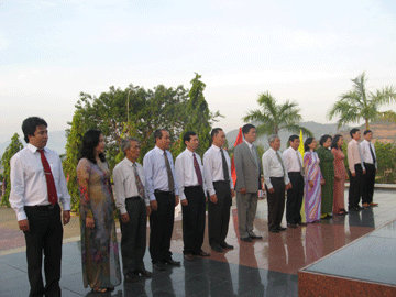 | Đoàn đại biểu Tỉnh ủy do ông Lê Thanh Quang - Phó Bí thư Thường trực Tỉnh ủy, Chủ tịch HĐND tỉnh Khánh Hòa dẫn đầu viếng và đặt vòng hoa tại Nghĩa trang liệt sĩ Hòn Dung.