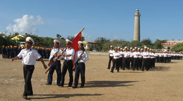 | Lực lượng vũ trang huyện đảo Trường Sa duyệt đội ngũ trong lễ mít tinh kỷ niệm 35 năm ngày giải phóng quần đảo Trường Sa. |