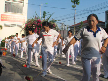 | Đồng diễn thể dục dưỡng sinh tại hội thao. |
