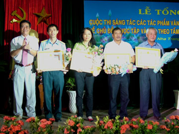 Ngày 18-5, tại Nha Trang, Ban Chỉ đạo Cuộc vận động “Học tập và làm theo tấm gương đạo đức Hồ Chí Minh” Tỉnh ủy Khánh Hòa tổ chức tổng kết và trao giải cho các tác phẩm xuất sắc trong cuộc thi sáng tác các tác phẩm văn học, nghệ thuật và báo chí về chủ đề “Học tập và làm theo tấm gương đạo đức Hồ Chí Minh”.