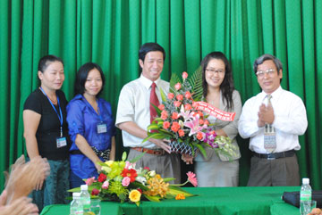 Thay mặt Tòa soạn, ông Lương Kiên Định - Tổng Biên tập báo cáo với ông Lê Xuân Thân và các thành viên trong đoàn một số nét nổi bật về Báo Khánh Hòa. Theo ông Lương Kiên Định, Báo Khánh Hòa đang tập trung tuyên truyền về Đại hội Đảng các cấp và xuất bản tập sách về các gương điển hình tiên tiến của tỉnh. Ông cũng chia sẻ niềm vui của Tòa soạn khi nhiều phóng viên Báo Khánh Hòa đoạt giải thưởng cao tại giải báo chí tỉnh năm 2010.