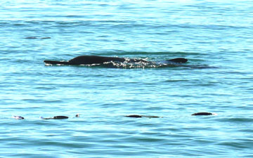 | Chú cá heo lượn quanh bờ. |