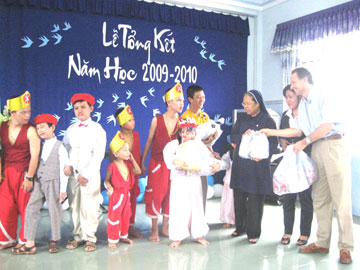 . Khách sạn Sunrise Nha Trang vừa đến thăm và tặng quà cho các cháu thiếu nhi tại Cơ sở giáo dục trẻ khuyết tật Sao Mai (Nha Trang). Ông Felix Von Bodman - Tổng Quản lý Khách sạn Sunrise Nha Trang đã trao 50 phần quà gồm bánh kẹo và quần áo cho các cháu khuyết tật tại đây.