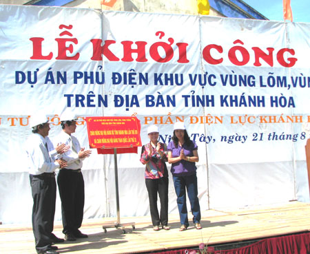 Ngày 21-8, tại xã Ninh Tây (Ninh Hòa, Khánh Hòa), Công ty Cổ phần Điện lực Khánh Hòa tổ chức lễ khởi công Dự án phủ điện vùng lõm, vùng trắng trên địa bàn tỉnh Khánh Hòa. Đây là công trình chào mừng Đại hội Đảng bộ tỉnh Khánh Hòa lần thứ 16 và Đại hội Đảng toàn quốc lần thứ 11. Dự lễ có bà Nguyễn Thị Thu Hằng - Phó Chủ tịch UBND tỉnh Khánh Hòa.