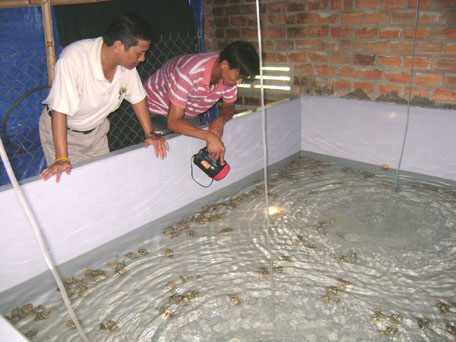 | Tổ liên kết sản xuất ốc hương giống phát huy hiệu quả. |